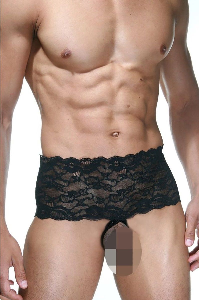 Черные мужские трусы с открытой интимной зоной. Сделаны из мягкой ткани, поэтому отлично сядут на любую фигуру, будут максимально комфортными и подчеркнут все достоинства фигуры.