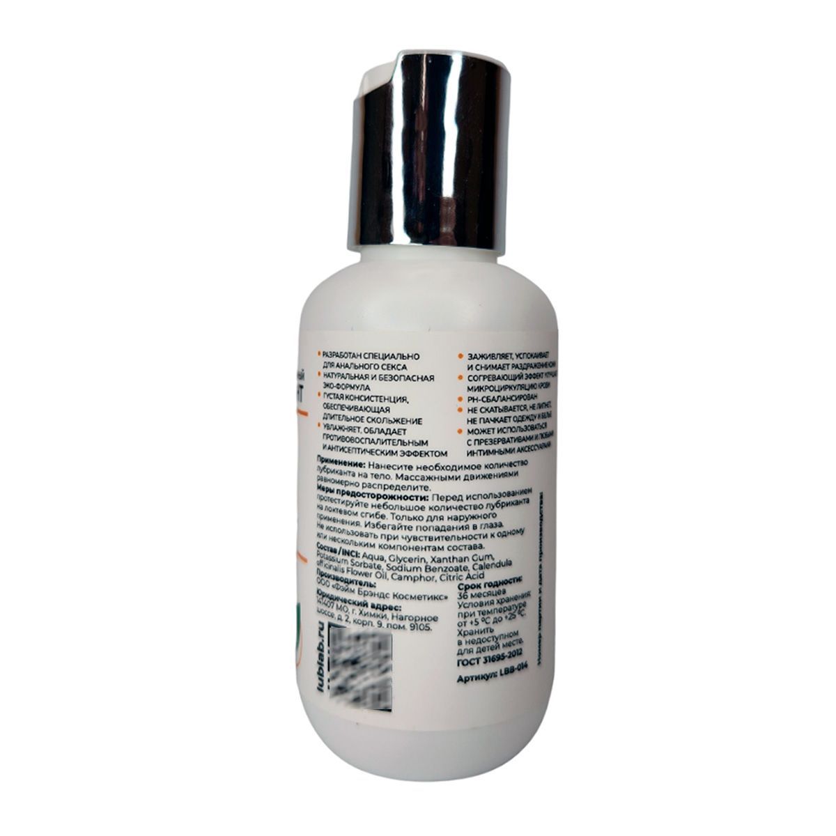 Интимный лубрикант с натуральной и безопасной ЭКО-формулой разработан специально для анального секса. Обладает густой консистенцией, обеспечивающей длительное скольжение. Входящая в состав камфора улучшает микроциркуляцию в месте нанесения, вызывая дополнительные ощущения. Прозрачный гель заживляет и успокаивает раздраженную кожу, оказывает противовоспалительное и антисептическое действие благодаря входящему в состав маслу цветков календулы. Не скатывается, не липнет, не пачкает одежду и белье, PH-сбалансирован. Может использоваться с презервативами и любыми интимными аксессуарами.