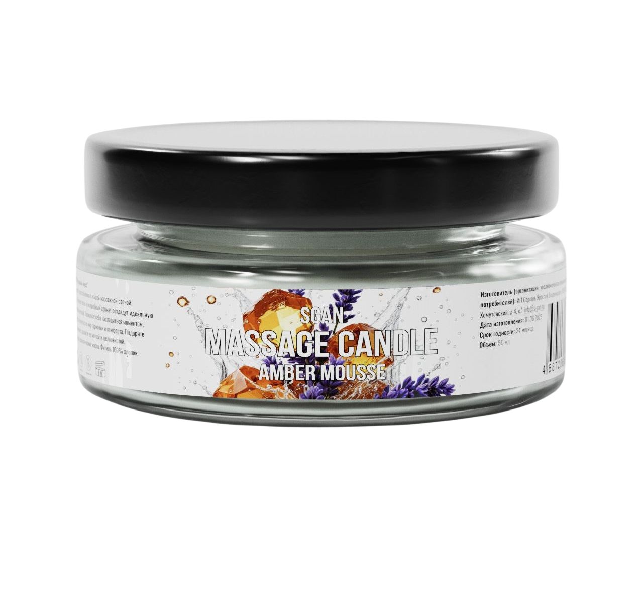 Массажная свеча с ароматом янтарного мусса SGAN в стеклянной банке — это натуральное средство для расслабления, ухода за кожей и создания романтической атмосферы. Свеча изготовлена из 100% кокосового воска с добавлением ароматического масла янтарного мусса и хлопкового фитиля, что обеспечивает безопасное и чистое горение. При нагревании свеча превращается в тёплое массажное масло, которое глубоко увлажняет, питает и смягчает кожу, делая её шелковистой и ухоженной. Приятный аромат янтарного мусса наполняет комнату уютом и гармонией.