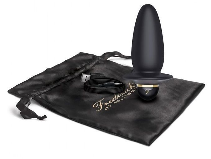 Бархатистый и нежный плаг из черного силикона. Игрушка имеет 7 различных функций вибрации и пульсации, который переключаются кнопкой на основании. Вибратор заряжается от usb, время зарядки составляет 2 часа, время работы до 1 часа, В комплекте черный чехол для хранения, оберточная бумага для коробки и атласная лента с подарочной открыткой в конверте. Рабочая длина - 8 см.