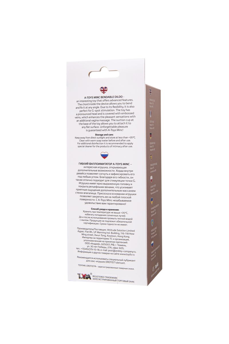Гибкий фаллоимитатор A-Toys Minc – интересная игрушка, открывающая дополнительные возможности. Хорда внутри девайса позволяет согнуть и зафиксировать его под любым углом. Благодаря его гибкости, он также отлично подходит для стимуляции точки G. Игрушка имеет ярко выраженную головку и покрыта рельефными венами, что усиливает приятные ощущения дополнительным массажем стенок влагалища. Присоска в основании игрушки позволяет закрепить ее на любой плоской поверхности. С A-Toys Minc незабываемое удовольствие вам гарантировано! Рабочая длина - 17 см.