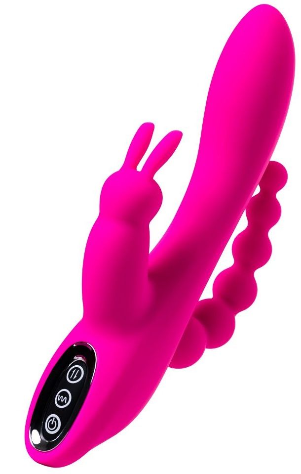 SPANKY - тройной вибростимулятор SPANKY - это лучший любовник для девушки, которая хочет всего и сразу. Вагинальная стимуляция, клиторальная и анальная - никогда еще наслаждение не было столь всеобъемлющим. У SPANKY 2 мотора: в основном (среднем) вибраторе и у основания клиторального отростка. Ушки кролика игриво шевелятся и деликатно стимулируют клитор. Плавно расширяющийся анальный отросток идеально подходит для постепенного ввода. Игрушка изготовлена из высококачественного бархатистого силикона. Заряжается от USB. 7 режимов вибрации, 3 скорости вибрации, 2 мотора, тройная стимуляция. Рабочая длина - 13 см. Длина анального стимулятора - 10,2 см., диаметр - 2,2 см.